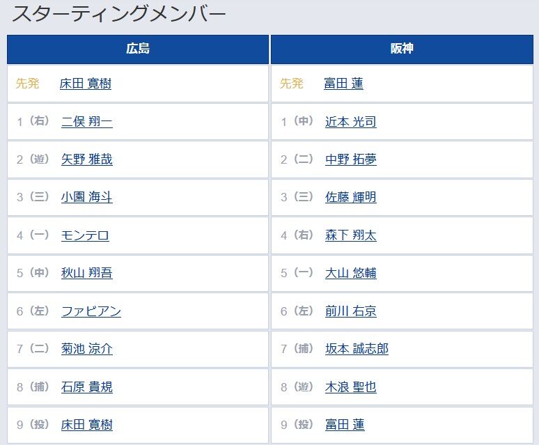 【広島対阪神2回戦】7(捕) 坂本 誠志郎 8(遊) 木浪 聖也