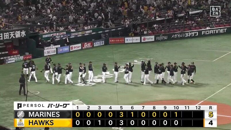 【ソフトバンク対ロッテ2回戦】ロッテが5-4でソフトバンクとの延長戦を制す!9年ぶり開幕2連勝!岡一時逆転3ラン&10回決勝打!ソフトバンクは33年ぶり開幕連敗スタート