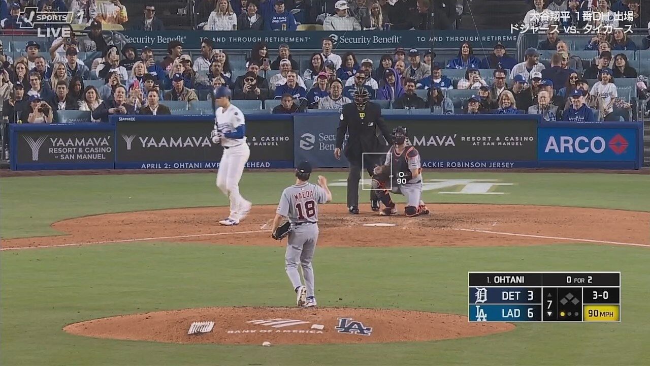大谷翔平、第四打席で前田健太と対戦も四球→今季初盗塁成功!!!!!!