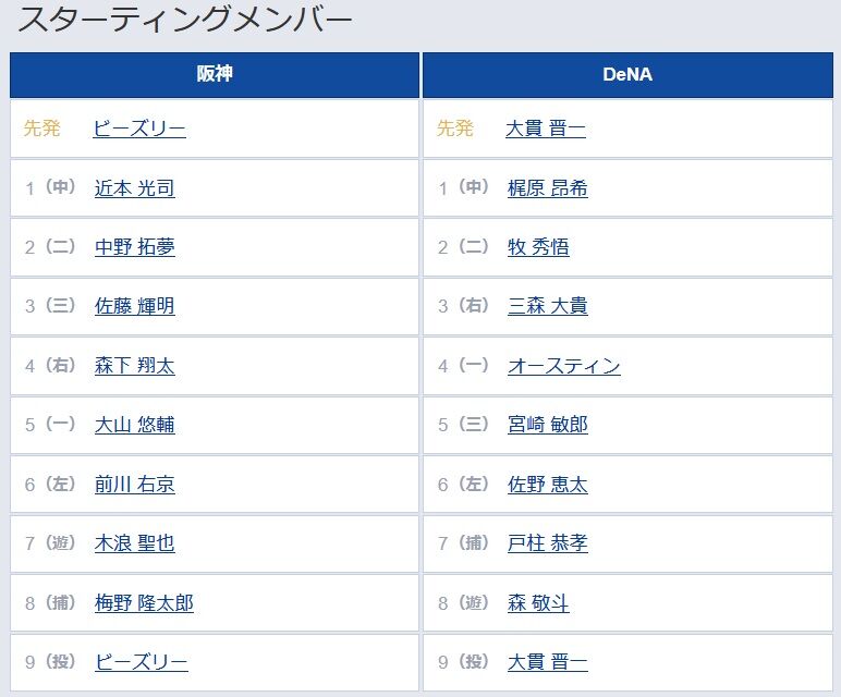 【阪神対DeNA2回戦】 6(左) 前川 右京 8(捕) 梅野 隆太郎