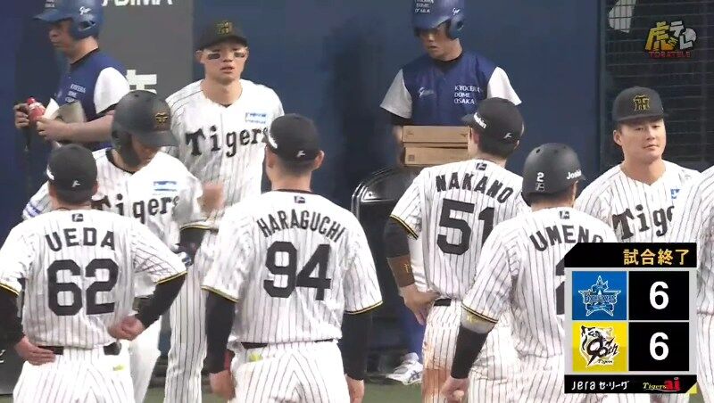 【阪神対DeNA2回戦】阪神対DeNAは6-6で延長12回引き分け