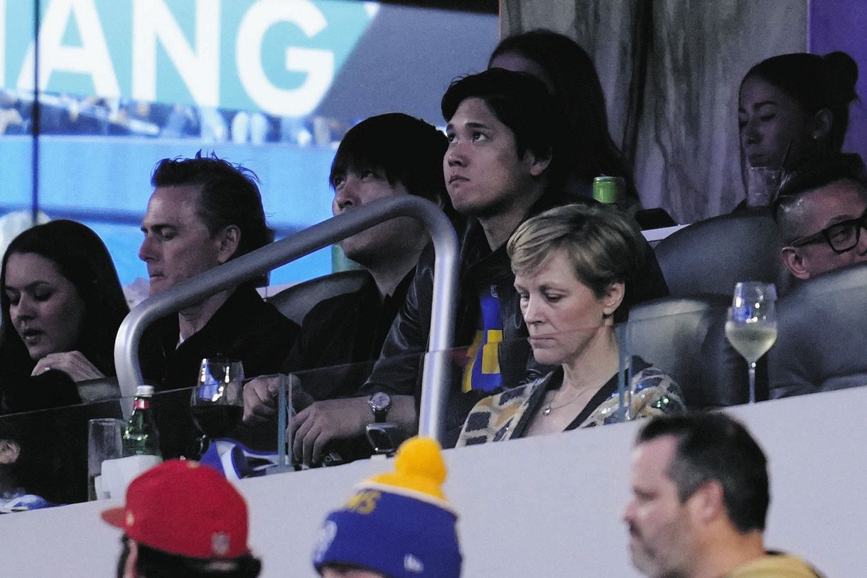 普段では見られない素顔の大谷。SNSでは「レーカーズはいつ翔平を招待するんだ」という声などのほか「セレブ生活を満喫しているようだ」というちょっと意地悪な英語の書き込みもあった。(写真はAP)