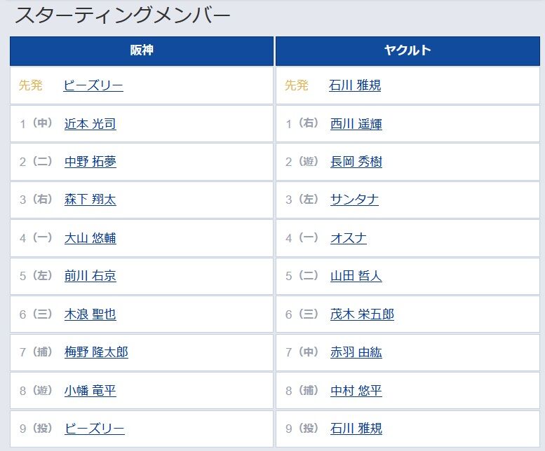 【阪神対ヤクルト2回戦】6(三) 木浪 聖也 8(遊) 小幡 竜平