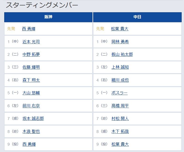 【阪神対中日2回戦】4(右) 森下 翔太 4(右) 細川 成也