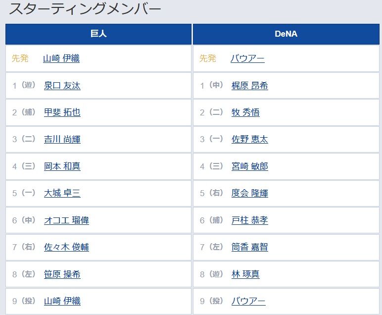 【巨人対DeNA4回戦】6(中) オコエ 瑠偉 8(左) 笹原 操希