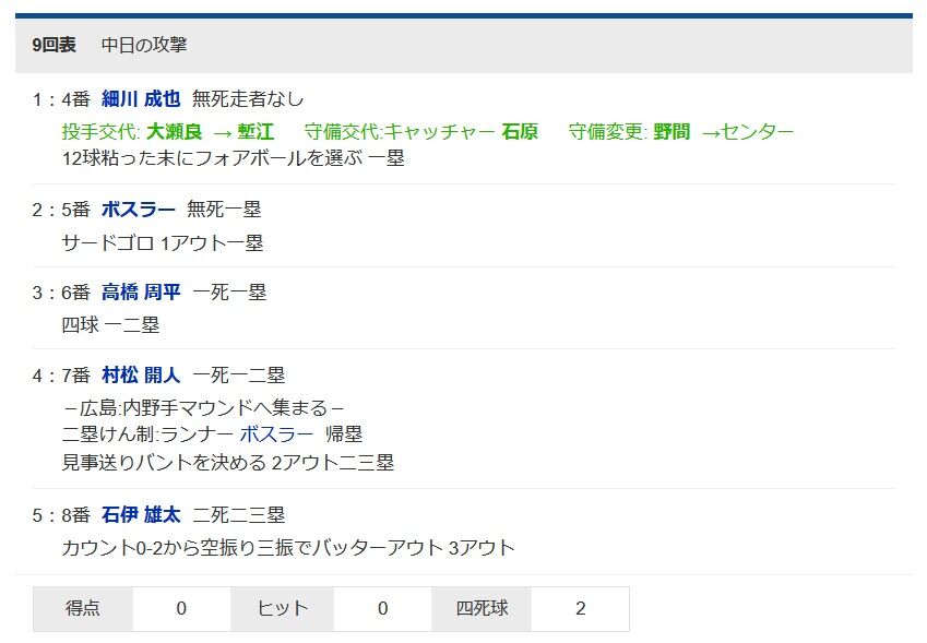 昨日はツーアウト満塁で塹江相手に代打中田翔で三球三振やぞ