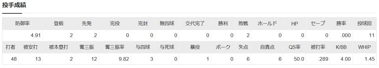 トレバー・バウアー(9億) 4.91 0勝2敗 奪三振率9.82 被打率.289 WHIP.1.45