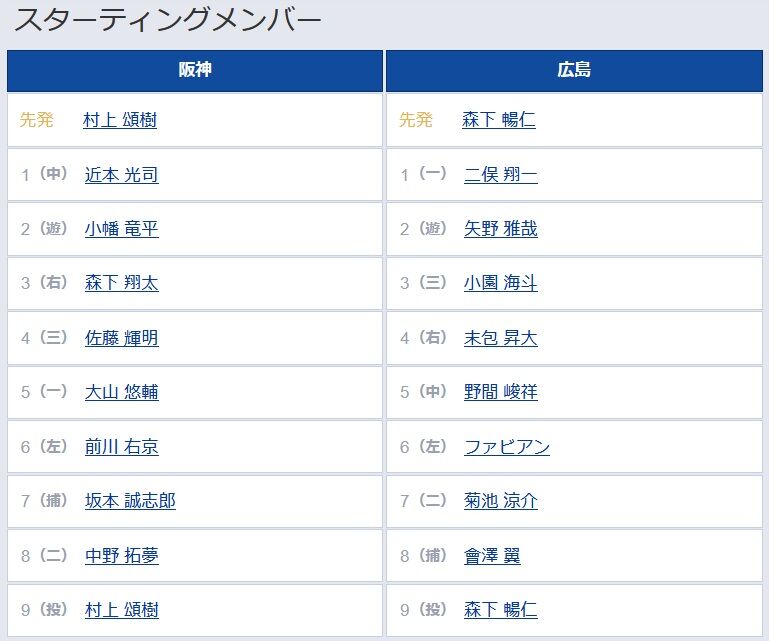 【阪神対広島4回戦】2(遊) 小幡 竜平 8(二) 中野 拓夢