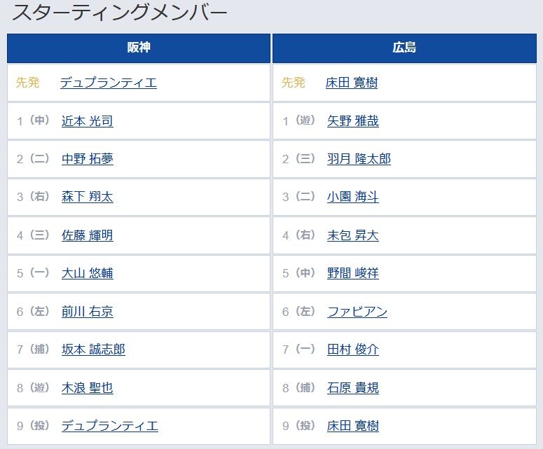 【阪神対広島5回戦】7(捕) 坂本 誠志郎 8(遊) 木浪 聖也