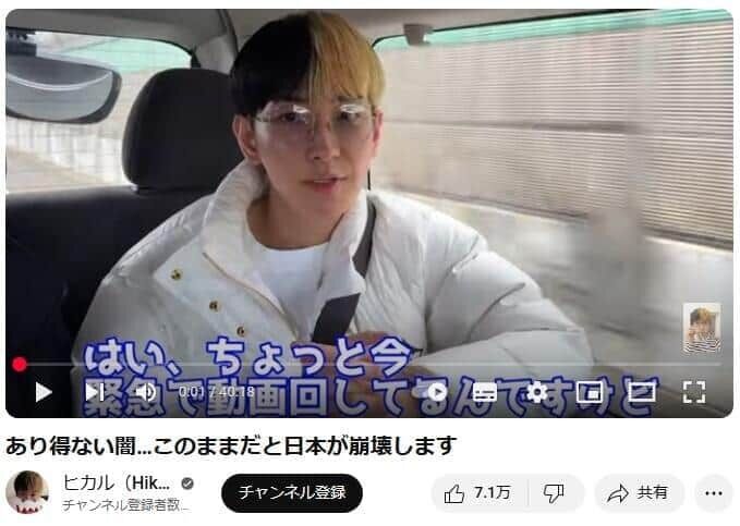 2月末頃から政治に関する話題を動画で取り上げていたヒカルさん。3月6日に公開した動画の中では、視聴者から「農家の米問題を広めてほしい」という声が寄せられていたといい、米問題にビジネスとして取り組む意向を明かしていた。