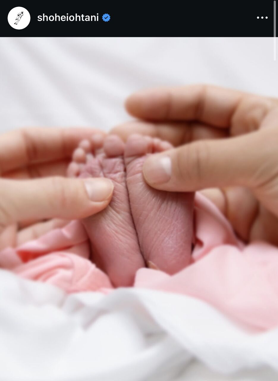 大谷が投稿したメッセージは「大谷家へようこそ!」で始まり、真美子さんへの感謝の思いと、娘への父親としての思いがつづられるとともに、大谷と真美子さんとみられる手の指に包まれた、赤ちゃんの小さな足の裏が写った「家族写真」が投稿されていた。