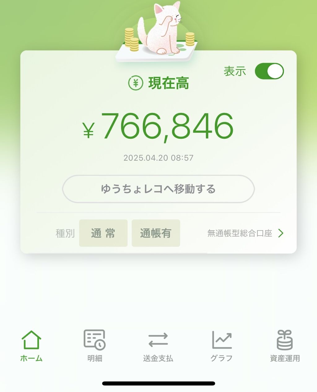 ワイ(38)、貯金がついに70万をこえて資産家の仲間入りになる