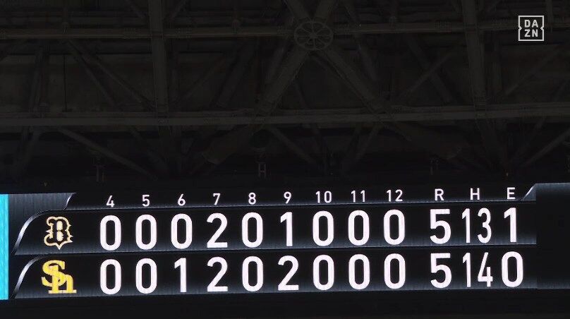 【ソフトバンク対オリックス4回戦】ソフトバンク対オリックスは5-5で延長12回引き分け