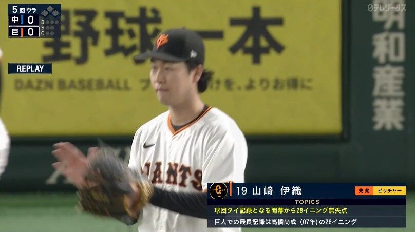 【巨人対中日5回戦】巨人・山崎伊織、球団タイ記録となる開幕から28イニング無失点!!!!!!!!!!!