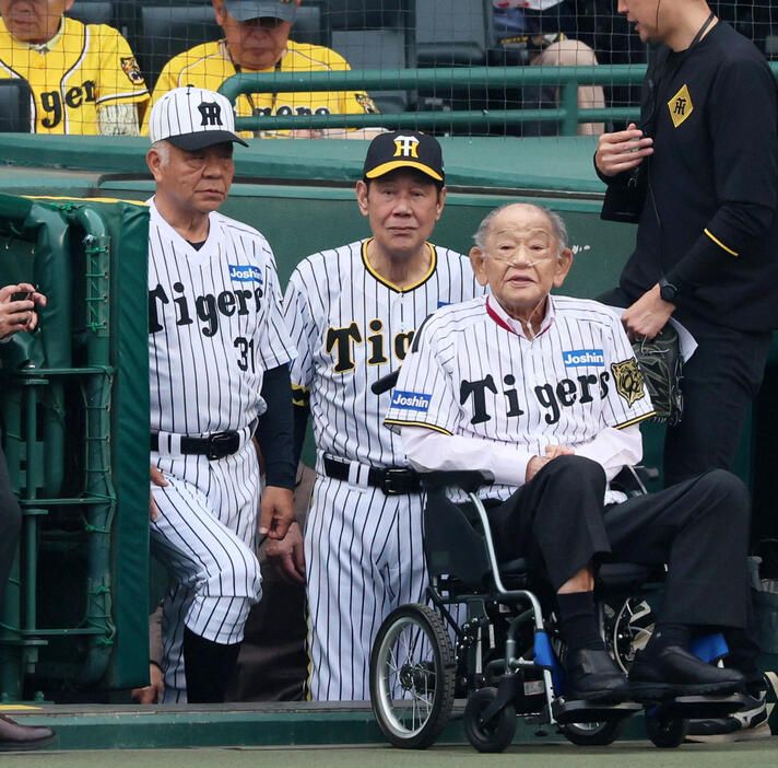 この日のテーマは「ミスタータイガース」。ファーストピッチセレモニーの参加者は掛布雅之OB会長(69)と田淵幸一氏(78)の2人と発表されていたが、オールドファンならずとも待望のレジェンド左腕が緊急参戦した。