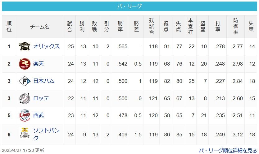 オリックスに勝ち越せたのはでかい