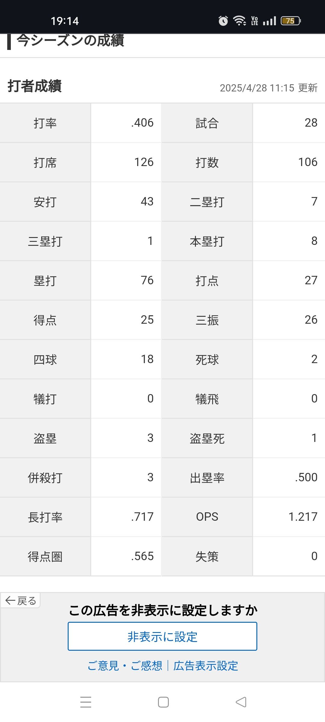 アーロン・ジャッジ「打率.406(106-43)8本27打点 OPS1.217 」←これについての感想wwww