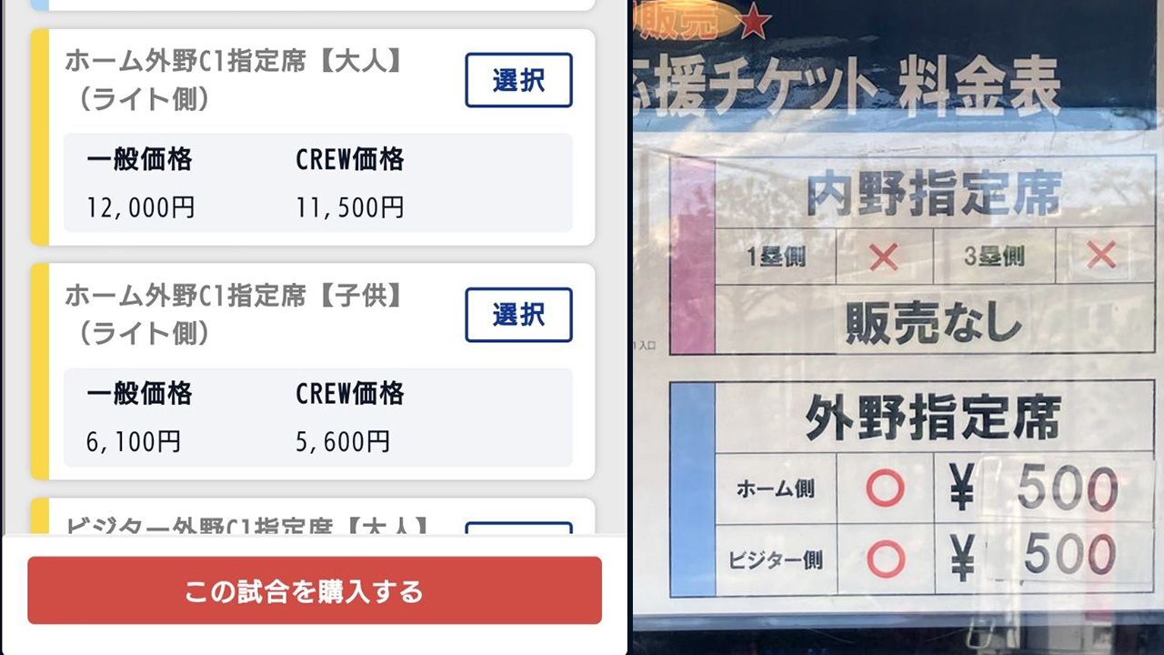 神宮外野席12000円で販売も売れ残り500円で投げ売り。カープ戦のチケットも高騰し苦情出る
