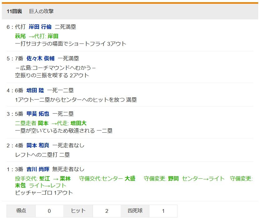 【譲り合い】巨人、延長11回1アウト満塁から無得点…【巨人対広島6回戦】