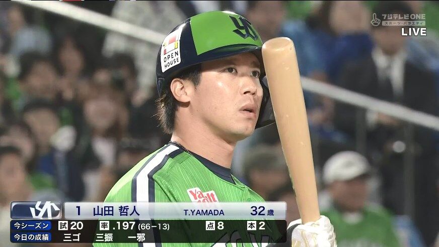 【悲報】山田哲人 .194 2本 長打率.328