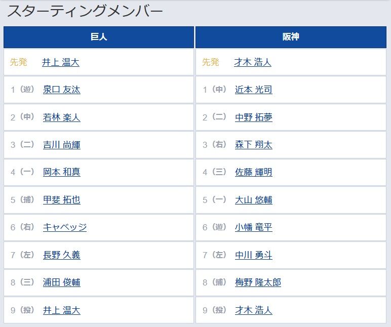9 (投) 井上 温大 9 (投) 才木 浩人