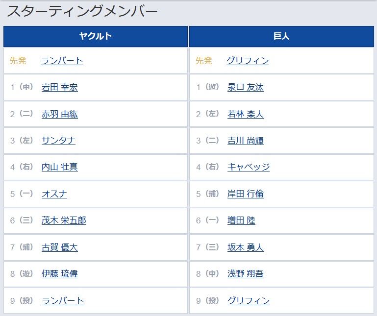 【ヤクルト対巨人8回戦】4(右) キャベッジ 5(捕) 岸田 行倫 8(中) 浅野 翔吾