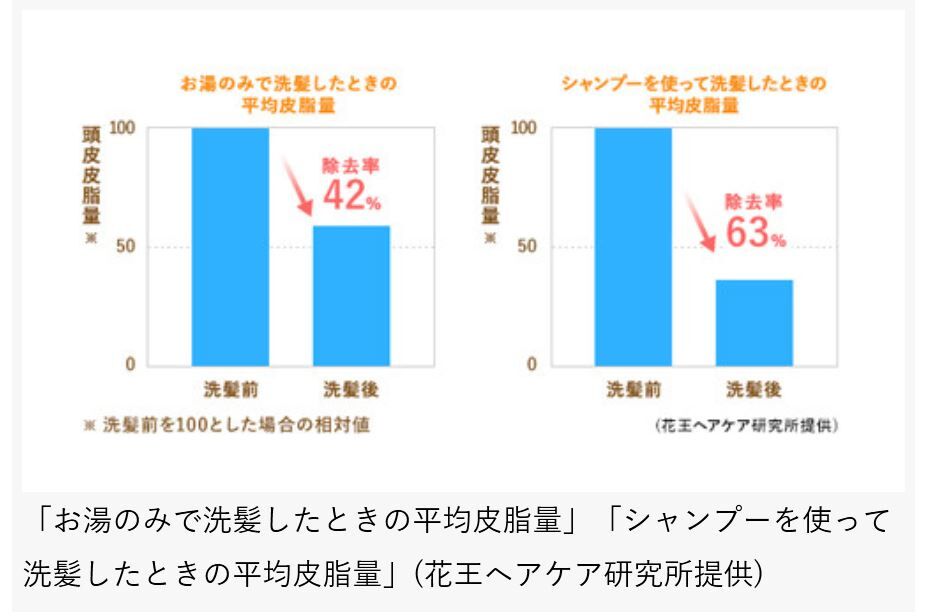 花王「湯シャンでは皮脂を40%しか除去出来ませんがシャンプー使えば60%も除去出来ます」