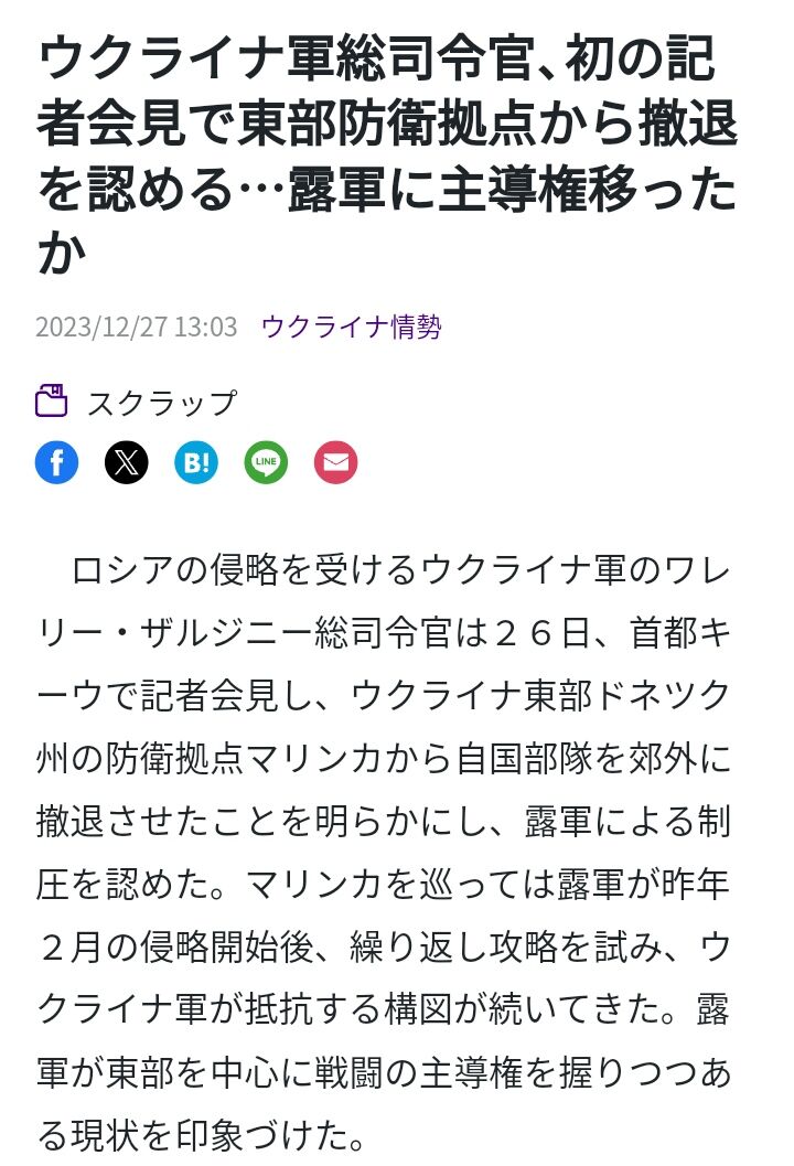 ウクライナ軍総司令官、初の記者会見で東部防衛拠点から撤退を認める…露軍に主導権移ったか