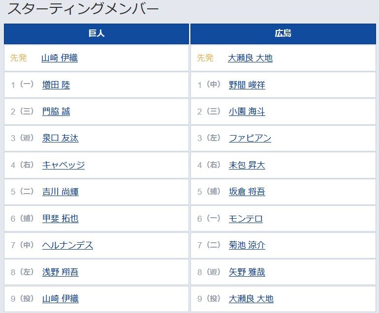 (投) 山﨑 伊織 9 (投) 大瀬良 大地