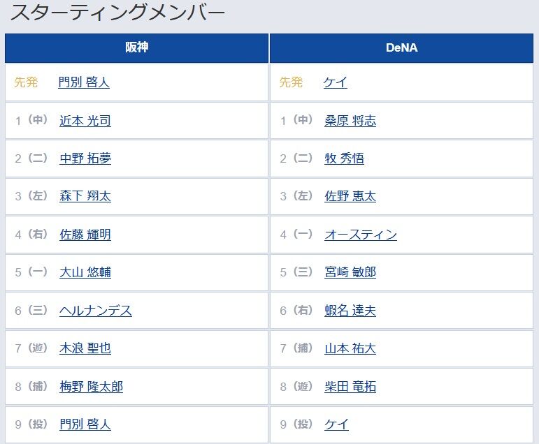 【阪神対DeNA10回戦】6(三) ヘルナンデス 8(捕) 梅野 隆太郎