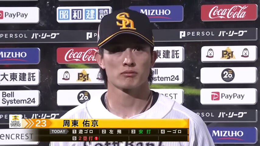 SB周東佑京 .330 1本 15打点 8盗塁 OPS.837