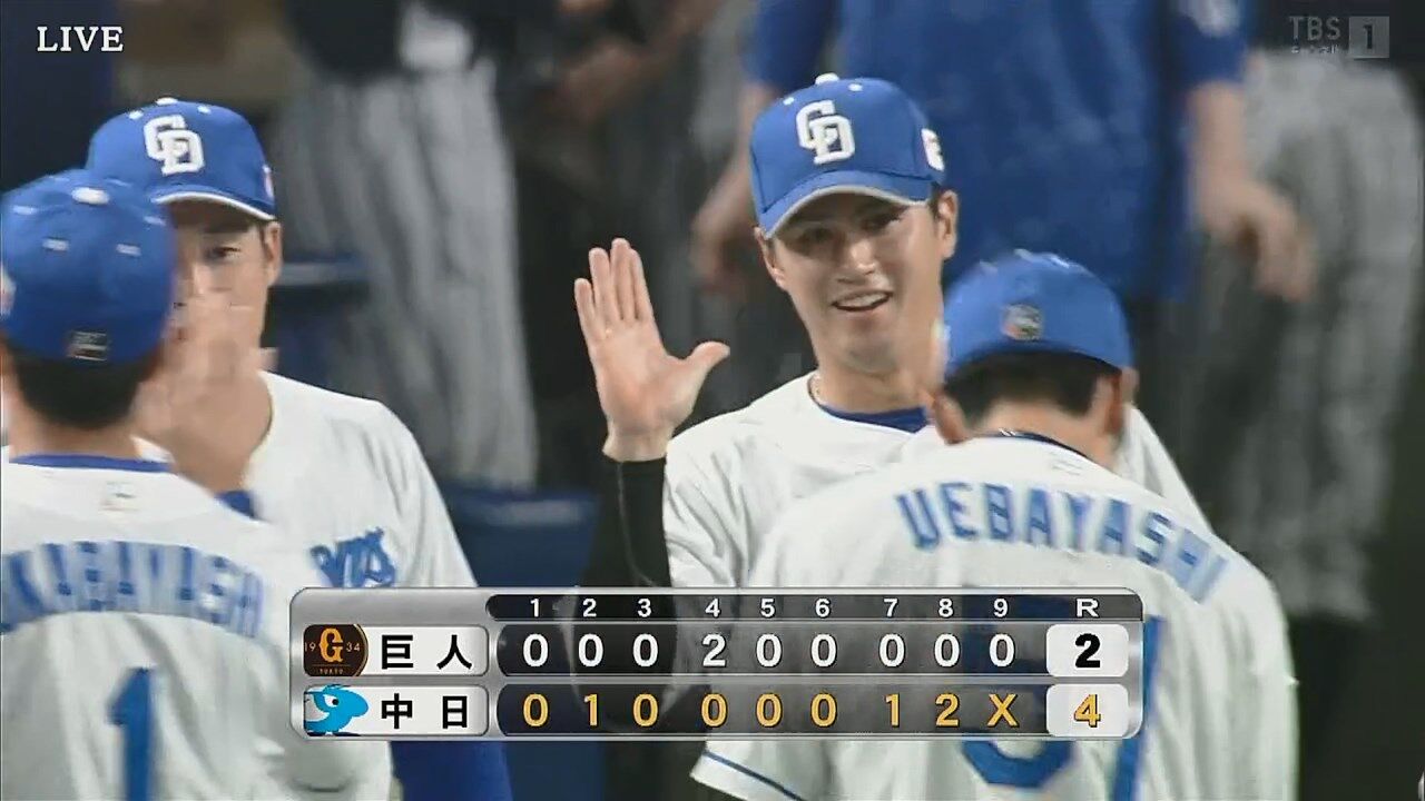 【中日対巨人10回戦】中日が4-2で巨人に逆転勝利!8回に代打板山祐太郎の2点適時三塁打で勝ち越し!巨人は競り負け首位阪神と2ゲーム差に