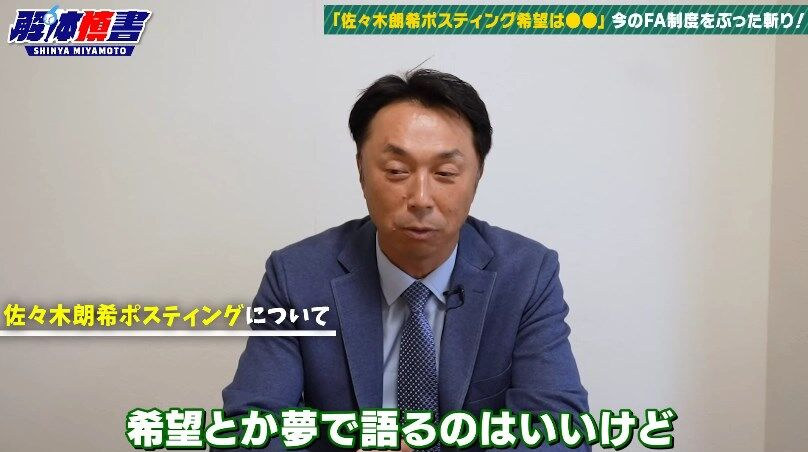 YouTubeチャンネルで佐々木のポスティングについて「まだ中6日で1年持っていないのに、それはちょっと違うんじゃないかなと思う。希望とか夢で語るのはいいけど」とコメント。さらにこう続けていた。
