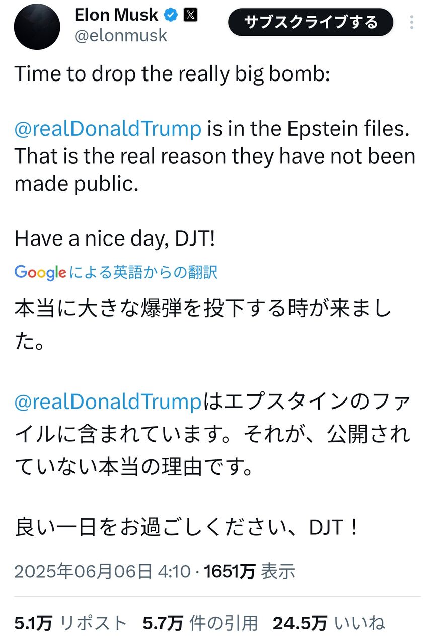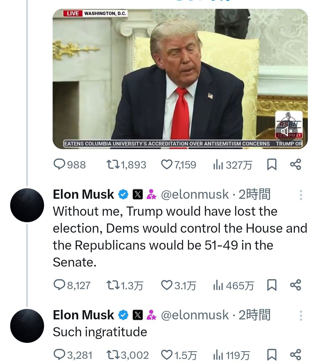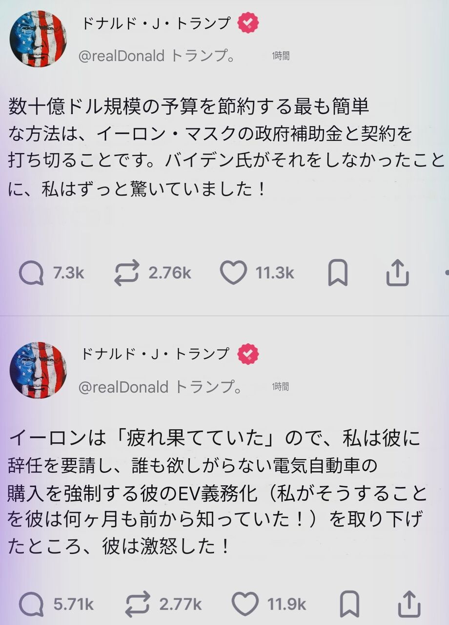 イーロン・マスクとトランプの喧嘩、一線を越える