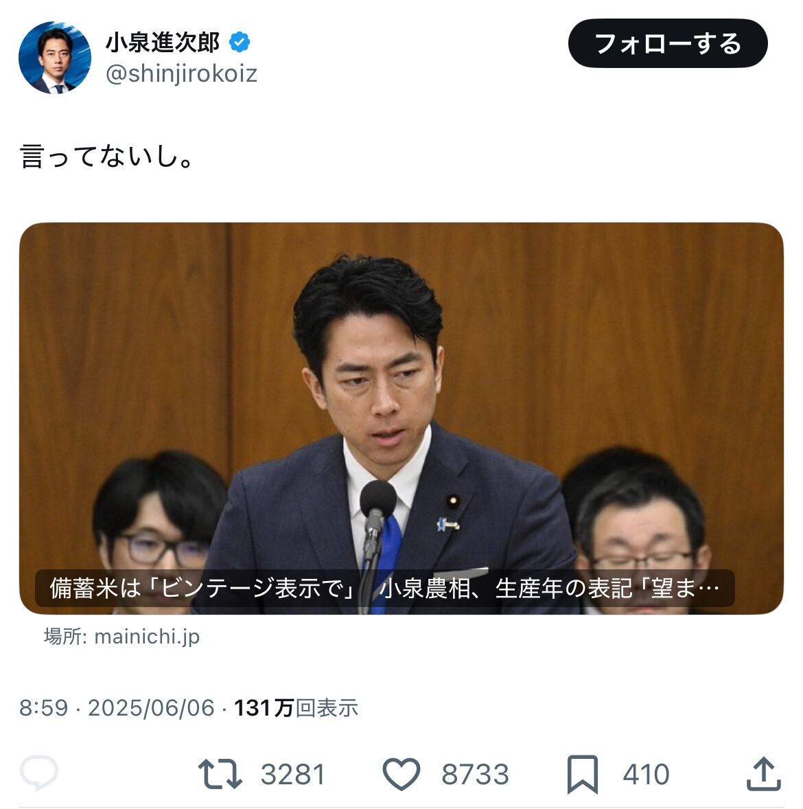 — 小泉進次郎 (@shinjirokoiz) June 5, 2025