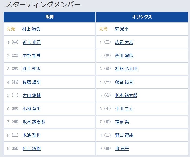 【阪神対オリックス1回戦】6(遊) 小幡 竜平 8(三) 木浪 聖也