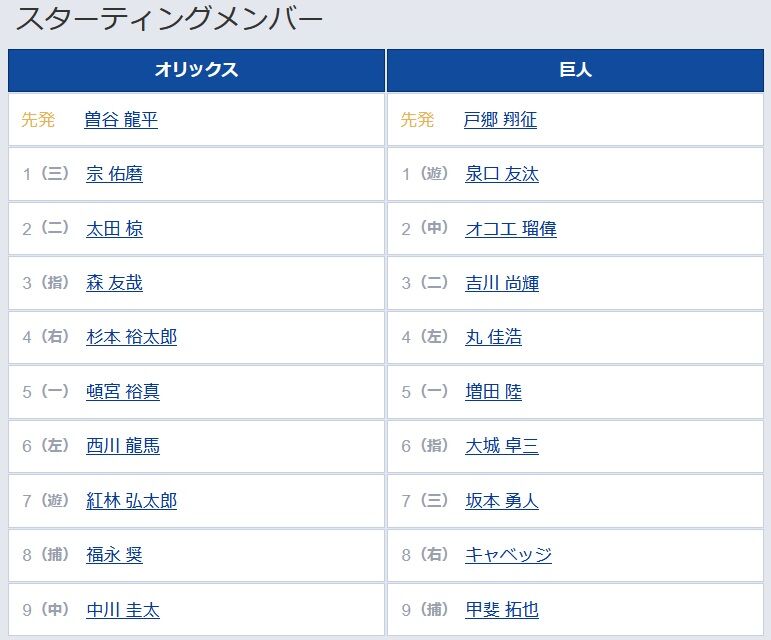 【オリックス対巨人3回戦】6(指) 大城 卓三 9(捕) 甲斐 拓也