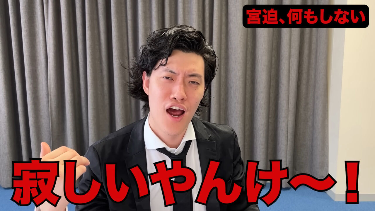 続けて「はい、以上です。何かせえよ~。宮迫くん。もうレギュラー落ちしよか? もう来週からなしやで? もう宮迫が何もしてない時に宮迫のことイジんの、これで最後にするで? もう来週以降なかったら、ほんまに無視するで? 寂しいやんけ」と宮迫に投げかけた。