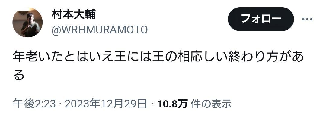 — 村本大輔 (@WRHMURAMOTO) December 29, 2023