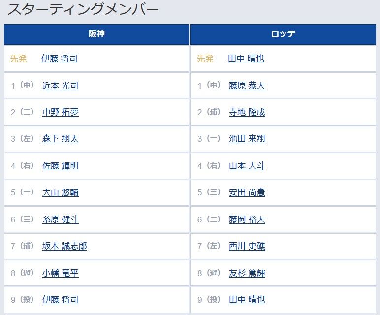 【阪神対ロッテ2回戦】6(三) 糸原 健斗 8(遊) 小幡 竜平