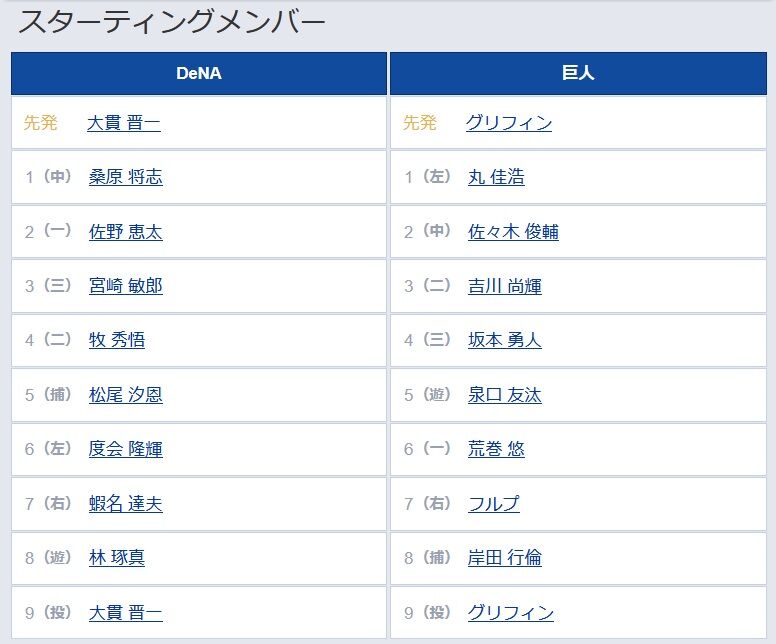 【DeNA対巨人12回戦】2(中) 佐々木 俊輔 6(一) 荒巻 悠 7(右) フルプ