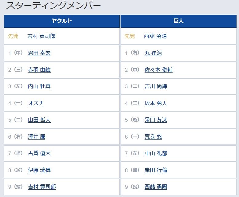 9 (投) 吉村 貢司郎 9 (投) 西舘 勇陽