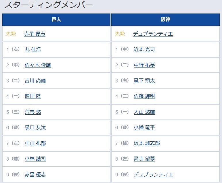 9 (投) 赤星 優志 9 (投) デュプランティエ
