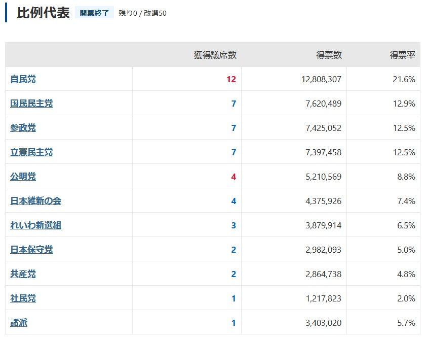 【悲報】立憲民主党さん、比例票を417万票も減らしてしまう