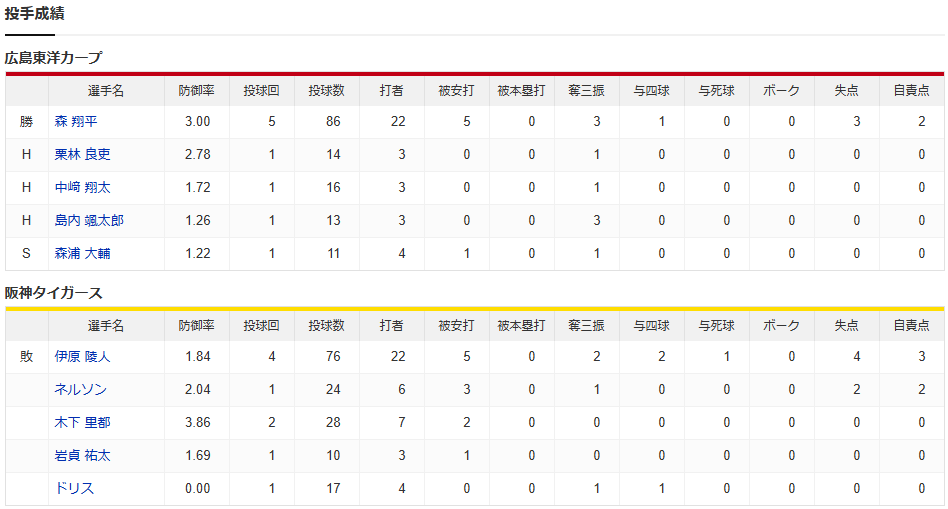 カープ森翔平〝二刀流〟で7連敗ストップ!末包2打点!モンテロ猛打賞!新守護神森浦プロ初セーブ締め【広島6-3阪神/試合結果】