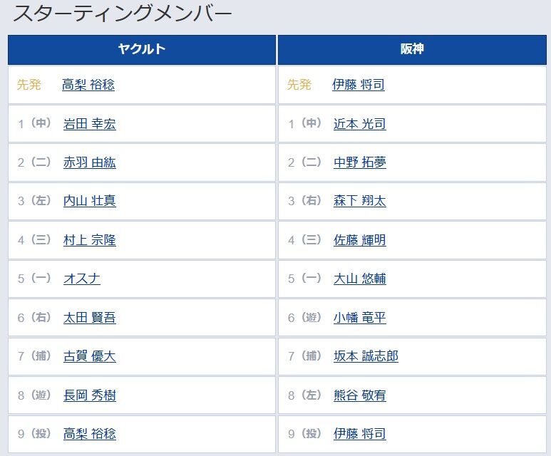 【ヤクルト対阪神14回戦】6(遊) 小幡 竜平 8(左) 熊谷 敬宥