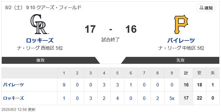 パイレーツが1回表の9得点を皮切りに合計16点で最弱ロッキーズをボコボコにした結果..