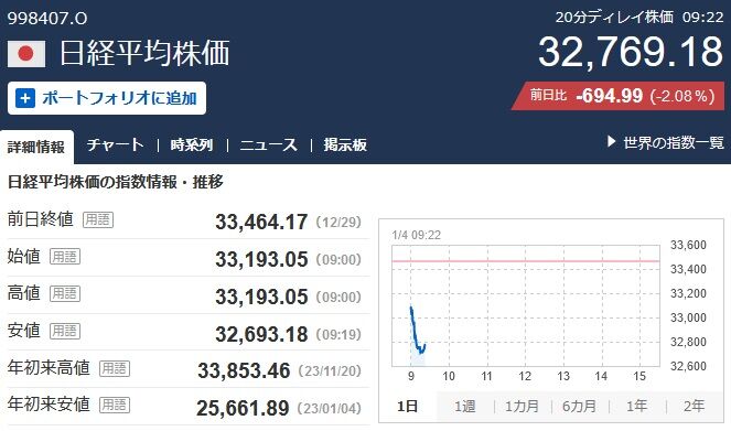 日経平均、逝く