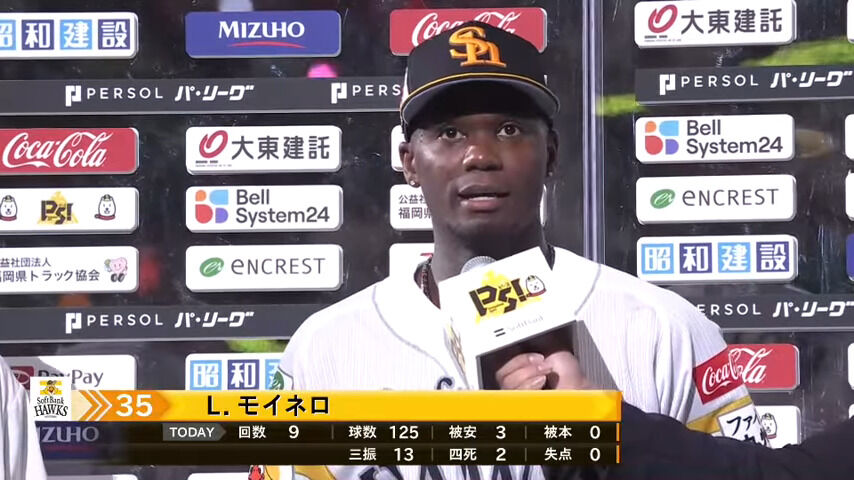 SBモイネロ 1.19 10勝2敗 128.1回 奪三振134 被打率.187 WHIP0.86
