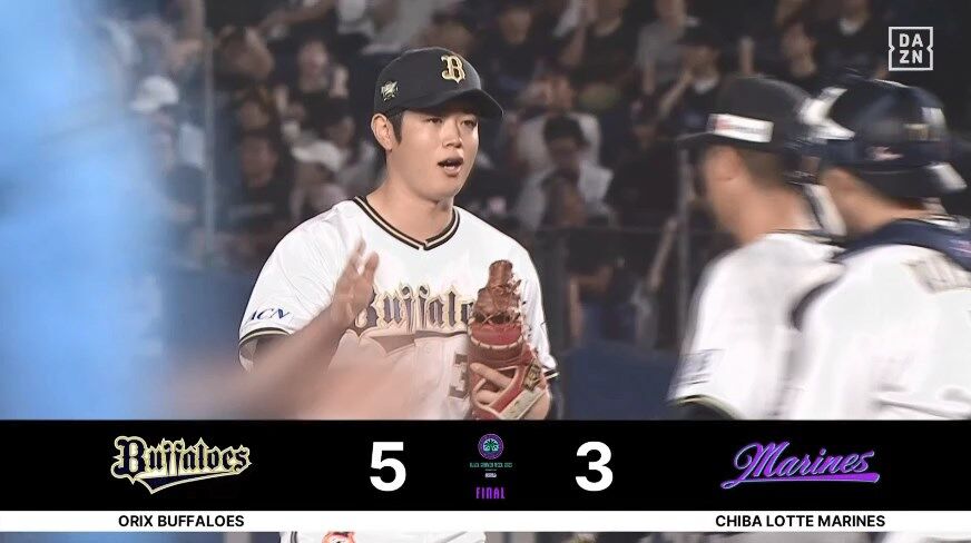 最後は #才木海翔 投手が締めて試合終了❗️#千葉ロッテ 3-5 #オリックス で
